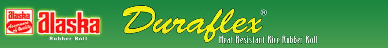 INTRODUCTION Alaska a brand known for more than three decades in rubber roll industry brings a revolution of paddy de-husking by introducing new "HEAT - RESISTANT" UTMOST QUALITY Duraflex Rubber Roll made up with it's latest technology combined with its superior chemical formulation as made by out teams of chemists gives an utmost performance which is far ahead from any other brand in the industry. Manufactured with most advanced plant and care it gives trouble - free shelling without any air bubble problem. |